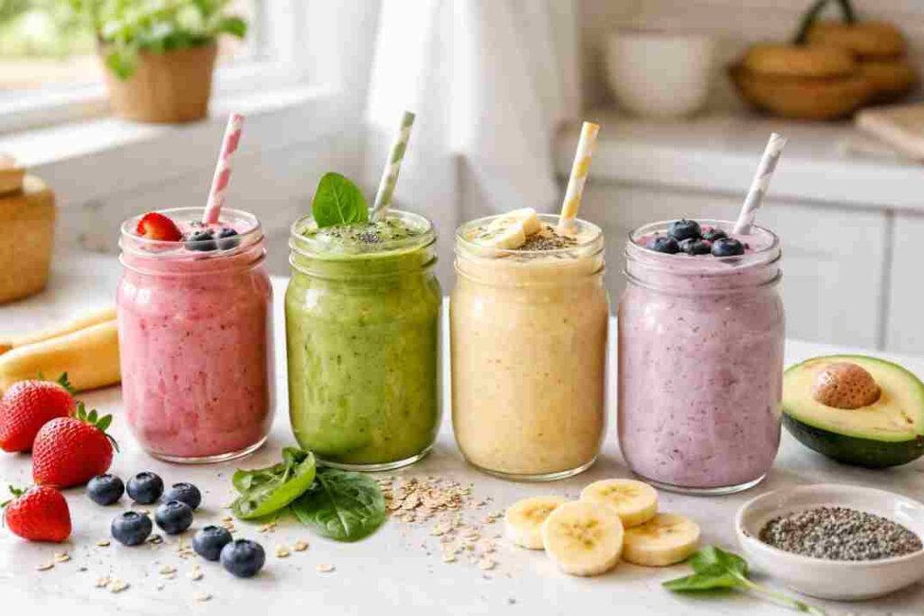 These are the smoothies I rotate through for everyday life. Busy mornings. Afternoon slumps. Light breakfasts. Sometimes dinner when I just don’t feel like chewing. Nothing fancy. Just real, easy smoothies that fit into real routines.