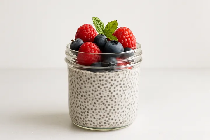 Ingredients: Chia seeds, almond milk, vanilla, berries.