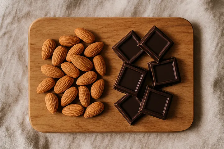 Why it works: Almonds give you healthy fats and vitamin E (an antioxidant), while dark chocolate (70% or higher) contains polyphenols that fight inflammation.