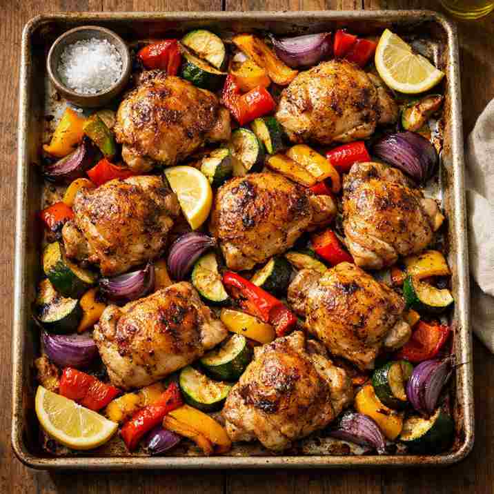 This is one of those dinners I make when I don’t want to think. I throw everything on one pan and let the oven do the work. It tastes bright, savory, and way more flavorful than it looks.