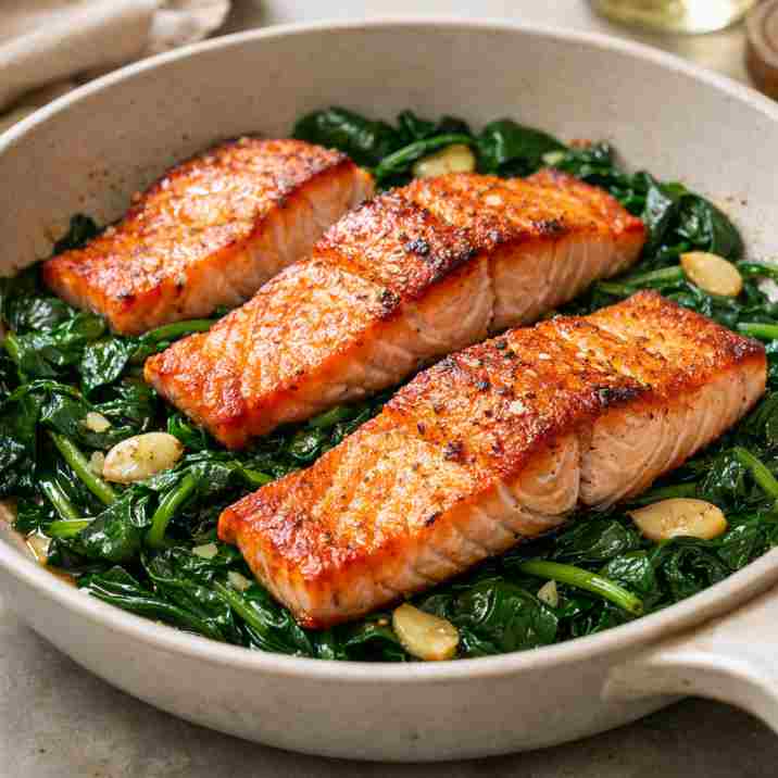 This is my go-to when I want dinner fast but still satisfying. The salmon cooks in under 10 minutes, and the garlic spinach feels cozy without being heavy. It tastes rich and savory with minimal effort.