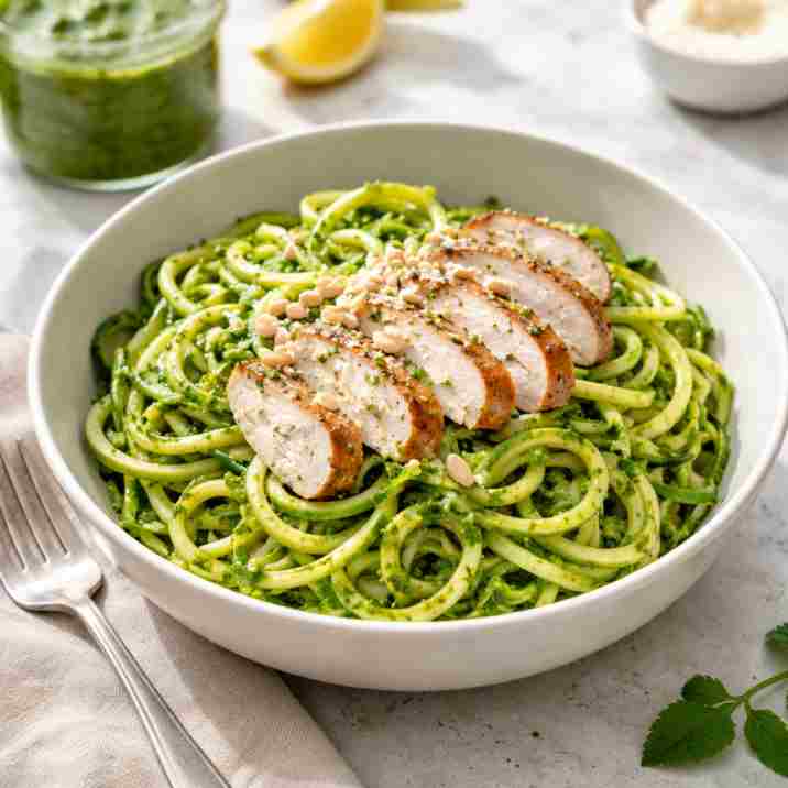 Zucchini noodles, chicken, pesto