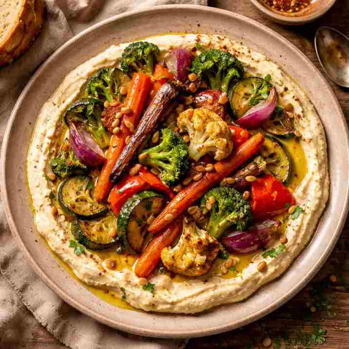 Roasted veggies, hummus