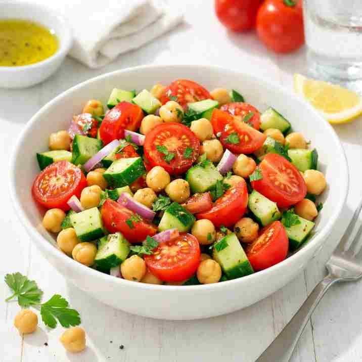 Tomatoes, cucumber, chickpeas