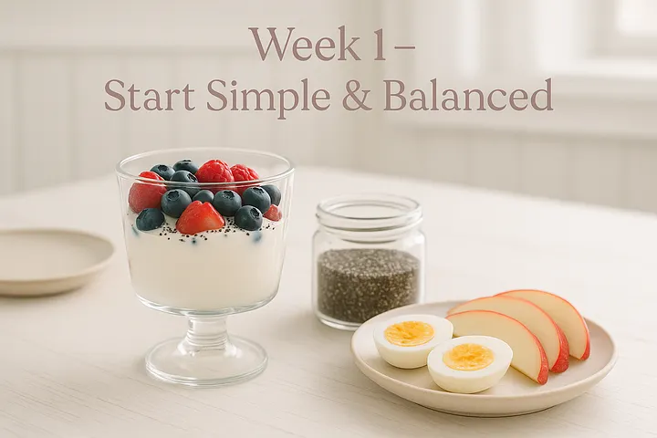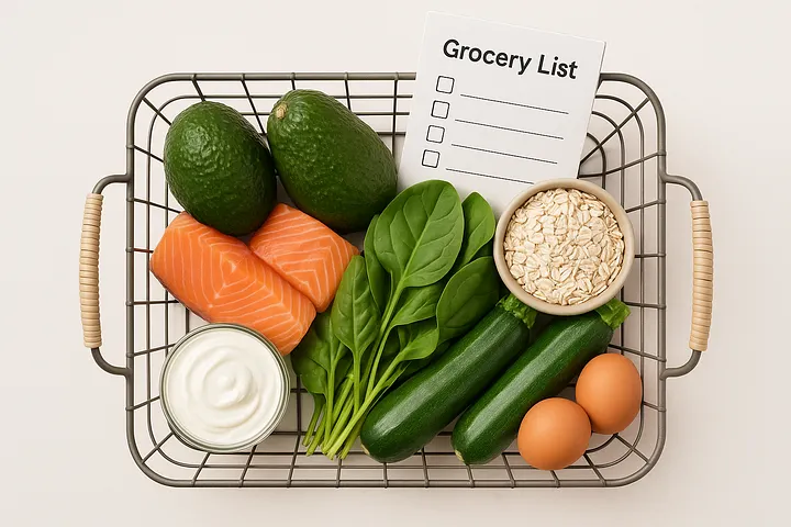 - Balance every meal: Include lean protein (chicken, fish, eggs, beans), healthy fats (avocado, olive oil, nuts), and fiber-rich carbs (vegetables, whole grains, berries).
