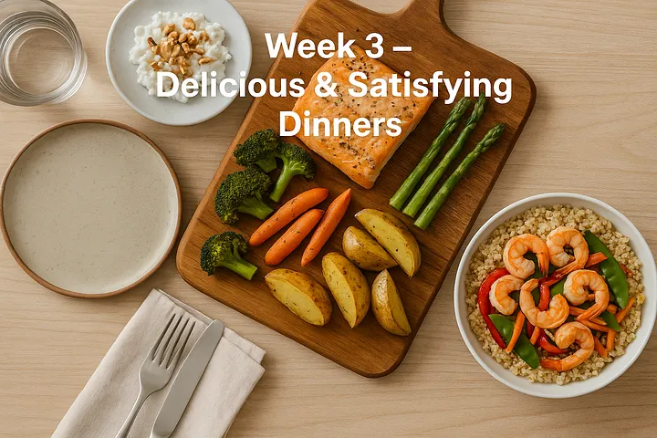 - Dinner: Shrimp stir-fry with cauliflower rice. Sauté shrimp with mixed veggies and soy sauce, serve over riced cauliflower.