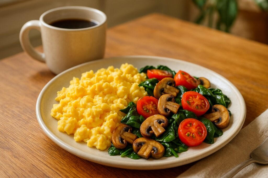 Key Ingredients: Eggs, spinach, mushrooms, tomatoes, olive oil.