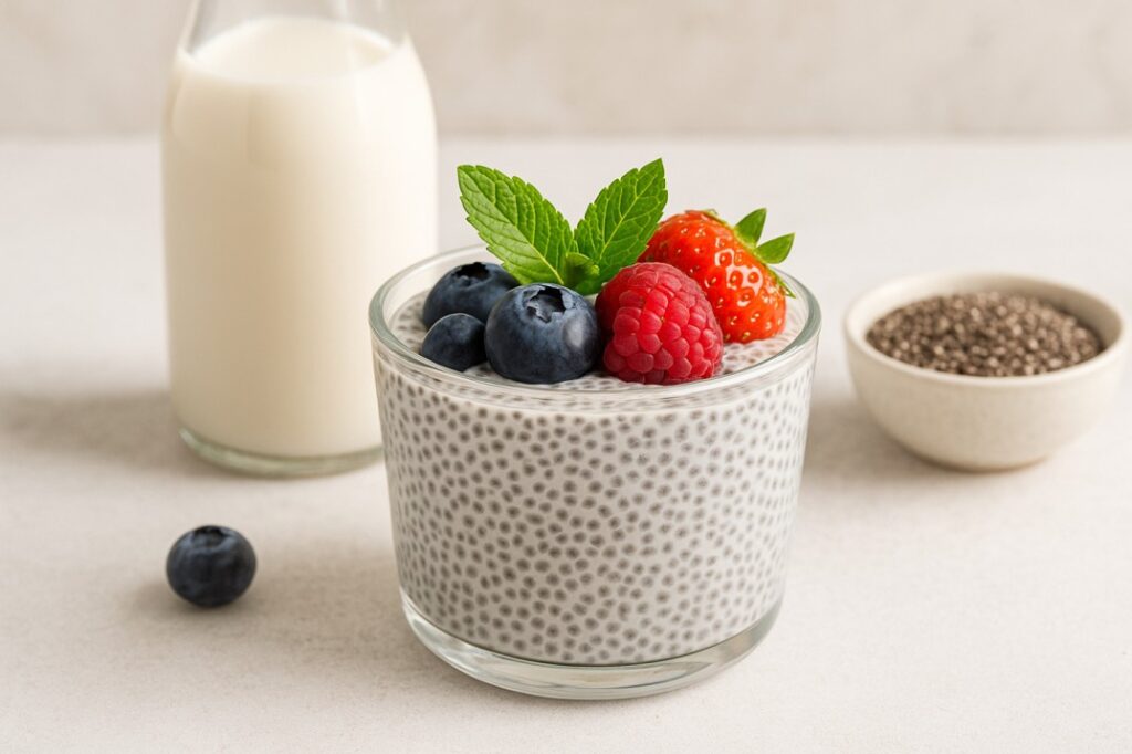 Key Ingredients: Chia seeds, almond milk, vanilla extract, stevia, berries.