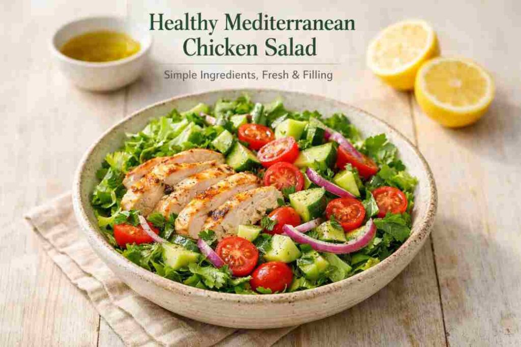 I used to think salads were either boring or something you ate when you didn’t have time to cook real food. That changed once I stopped trying to make them fancy. This Mediterranean chicken salad is the one that finally stuck in my rotation because it actually feels like a meal, not a side dish pretending to be lunch.